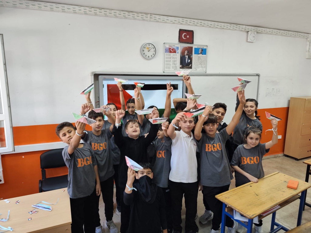 Belma Güde Ortaokulu ÇEDES Projesi Sorumlusu Hüsnüye Yaşar ve öğrencilerimizle birlikte, mazlumların sesi olmaya devam ediyoruz.